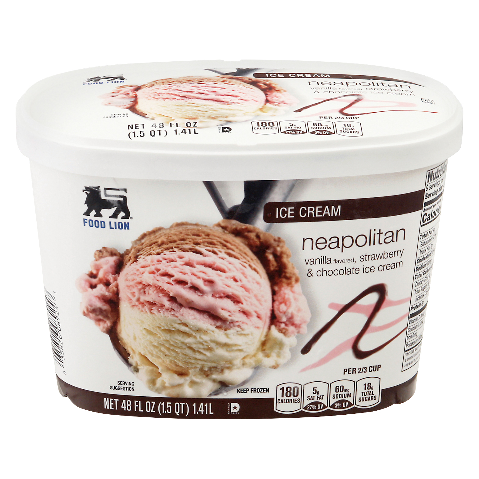 Food Lion Neapolitan Vanilla Strawberry Chocolate Ice Cream 48 Oz Bucket